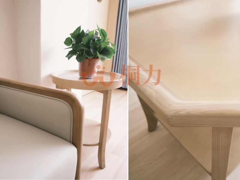 套房客廳:適老化沙發墊子不能像懶人沙發那(nà)樣陷進去,高密度海綿坐(zuò)下去有(yǒu)支撐,腰(yāo)不會酸。兩邊要有實木扶手,抓牢了能輕鬆站起來,麵料用防水防汙的,撒了茶水一擦就幹淨(jìng)。坐(zuò)麵離地45厘米左(zuǒ)右,站起坐下不吃力。適老化茶幾圓角防撞(zhuàng)設計:邊角倒圓,避免磕碰傷害。台麵(miàn)比沙發坐墊高5厘米,伸手(shǒu)拿水杯不用彎腰,邊緣帶擋水(shuǐ)條,倒(dǎo)水時(shí)不小心灑了,水會被凸起的邊沿攔住,不會流到身上或地上造成滑倒傷害。