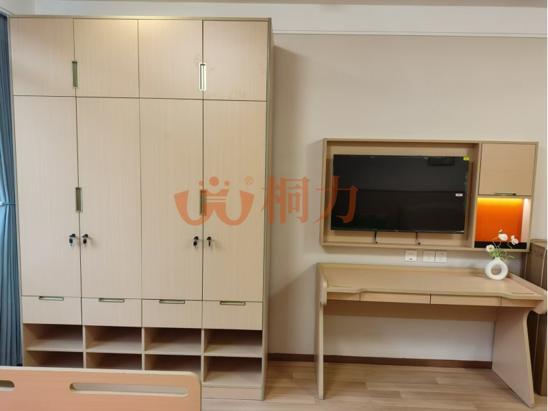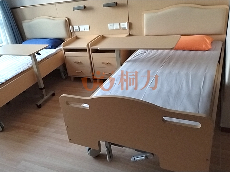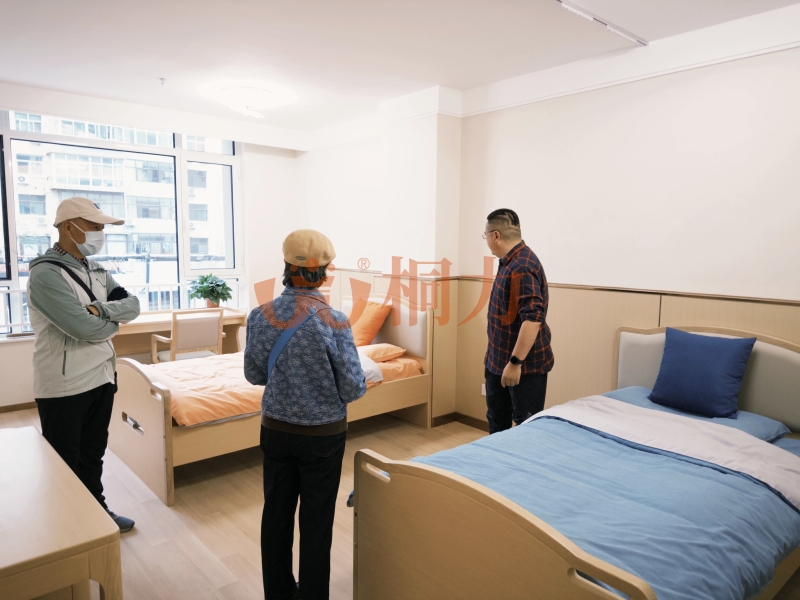 介護型房間:護理床能升(shēng)降,吃飯時調成靠背模式,帶護欄防止翻身掉下來,床墊軟硬適(shì)中不硌得(dé)慌。床頭櫃櫃麵帶擋板防止東(dōng)西滑落,下層抽屜方便(biàn)放置物(wù)品(pǐn)。步入(rù)式(shì)衣櫃掛衣杆能拉(lā)下來,坐輪椅也夠得到,櫃門裝(zhuāng)阻尼鉸鏈,開關門慢慢合上不撞手。感應小夜燈,晚上(shàng)起夜不用摸開關,人走過自動亮(liàng)燈,光線(xiàn)柔和不起夜眩光。床邊有緊急呼叫器,有什(shí)麽需求一鍵呼護理人員。