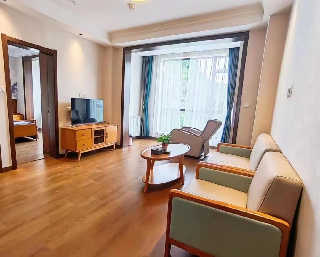 客廳家具配置有適老沙發、茶幾和適老電視櫃,沙發最重要的是坐墊的軟硬,老人起身需要借力,坐墊太軟會使腿部血液流通不暢而(ér)導致雙腿麻(má)木起身時容易摔倒,沙發扶手要選擇帶實木的(de)款式。茶幾和電視櫃邊(biān)角需(xū)要倒圓處理,避免磕碰傷害。
